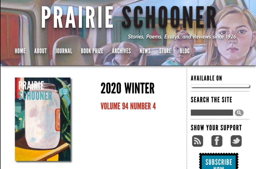 So honored to have my essay “Every Illness Recalls Another” in the Winter 2020 issue of Praire Schooner, one of this big classic American magazines. Thank you to editor Mahtem Shiferraw for seeking me out to write about Italy during the pandemic.